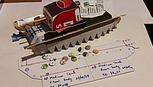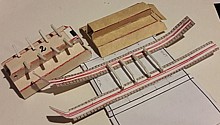 Booklet n°3 , March the 25th 2024. The AMX -13 VTT Armoured Personel Carrier model was chosen with the idea to develop the tank and the 105 mm mobile artillery models from it. I was still set in my idea to create a "fantasy early cold war" catalog. This was the first booklet that used mostly images, organised in "Steps", and concentrating schematics for templates in the central pages. This is also the first booklet where a standardised three-month development cycle was established: about one month of experimentation, one month of focused development and one month of finalisation and painting. There is an unexplained error in measurement that makes the front of the vehicle appear very thick and round, almost like a Sherman tank. The solution for the tracks was realistic but very tedious. This triggered a reflection that led to the definition of the design principles. |